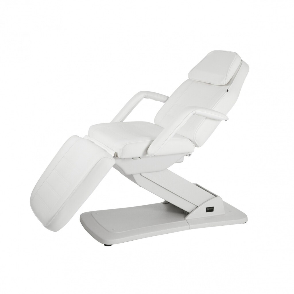 SweHealth biedt deze elektrische behandelstoel aan Ster voor schoonheidsbehandelingen. De stoel heeft een eenvoudig ontwerp, maar biedt veel comfort en een zeer stabiel frame. Het is een functionele stoel met 3 secties. Het is uitgerust met drie motoren die de hoogte, de rugleuning en de voetensteunbeweging regelen. Het heeft afneembare armen en ademgaten.