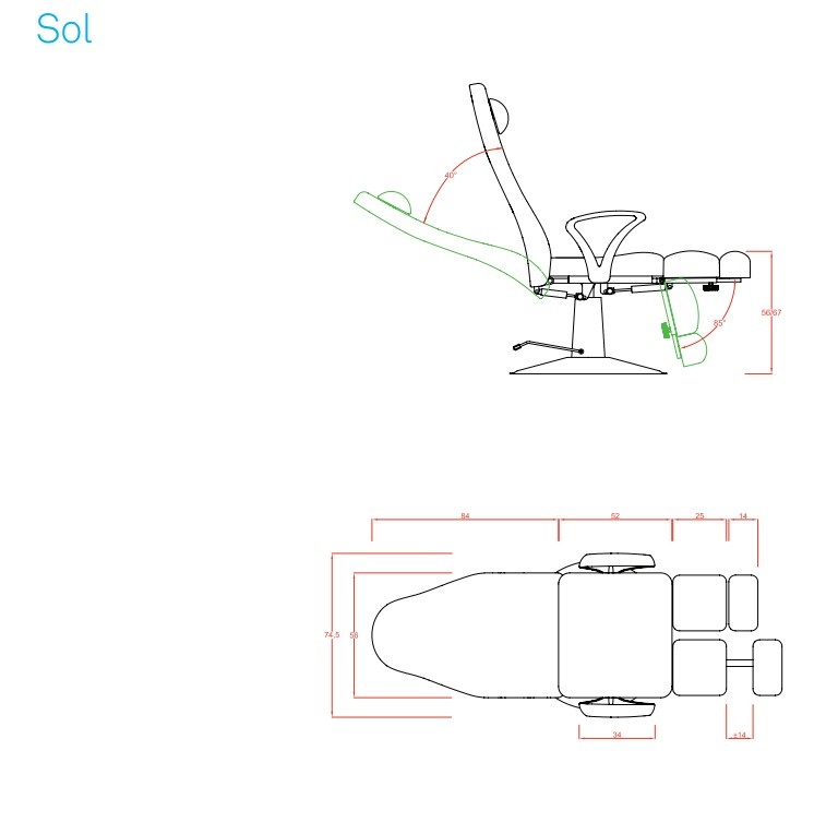 Draaibare voetverzorgingsstoel met zeer stabiele chromen voet. Verstelbare hoogteregeling door middel van een hydraulische pomp met rem. De rugleuning en de beensteun zijn traploos verstelbaar door middel van een gasveer. Hoogwaardige witte naadloze PVC-be